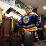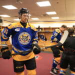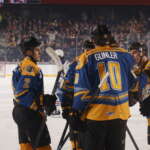 Scott Morrow, Ruslan Khazheyev and Mascot Skates wore a different jersey for