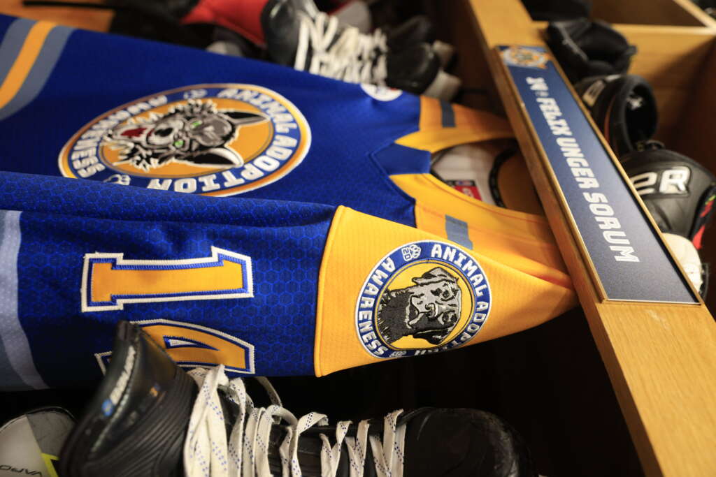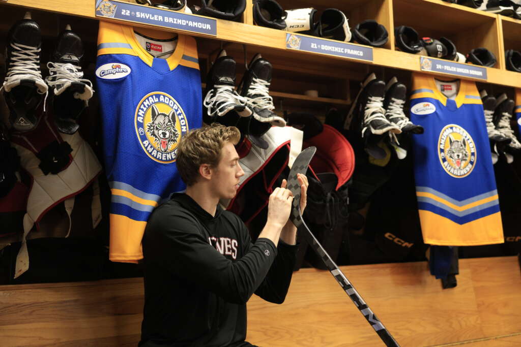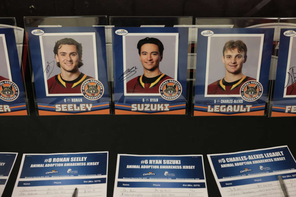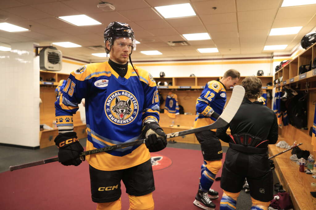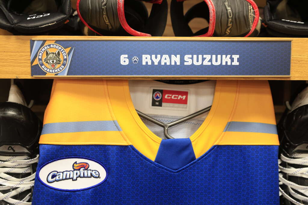 each game. A team-signed jersey was also part of the Blind Auction. Additionally, Wolves forward Skyler Brind’Amour’s jersey was available through a Golden Ticket Raffle. The use of multiple jerseys allowed the Wolves and their fans to maximize their impact in supporting Anderson Humane, Border Tails Rescue and Wright-Way Rescue.